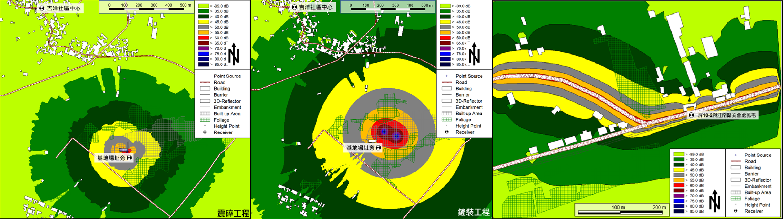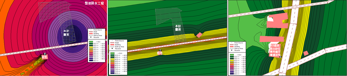 噪音模擬作業:採CadnaA噪音預測模式模擬場址周界均能音量並進行專業評估